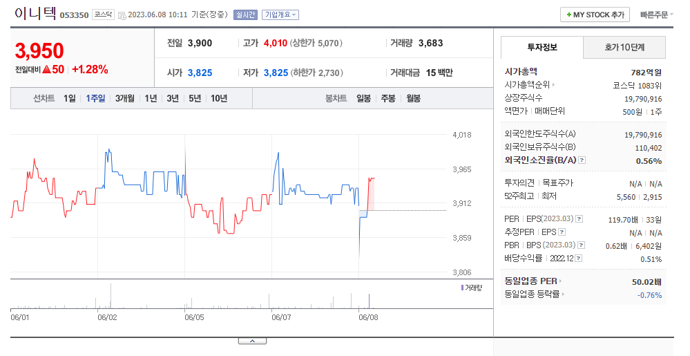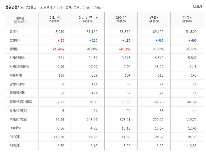 이니텍 현재 주가는 3,900원이며 전일 대비 -25원의 모습을 보이고 있습니다. 이니텍의 주주현황을 살펴보면 에이치엔씨네트워크(외 1인)이 지분 30.00%를 소유하고 있습니다. 이니텍는 일반 소프트웨어 기업으로 장중 기준으로 주가는 3,900원 입니다. 삼성전자의 시가 총액은 770억 원이며 발행 주식수는 0.56주 입니다. 외국인 보유 비중은 12,705% 이며 장중 거래량은 19,790,916를 기록했습니다. 매출액은 130억 원, 영업이익은 -25억 원을 달성했습니다. EPS는 없음원이며 이니텍 주식 배당수익률은 % 입니다.