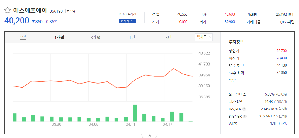 이 글에서는 에스에프에이 주가 전망과 목표 주가, 기업 정보에 대해서 설명합니다. 주식을 보기 전에 기업의 현재 주가와 재무 상태에 관해서 살펴보는 것이 필요합니다. 에스에프에이 주식의 주요 현황과 투자 정보를 확인하시고 현재 시장 현황을 살펴보겠습니다.