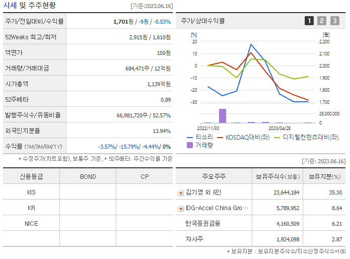 티쓰리 주가 전망 현황과 주식에서 기업 순위