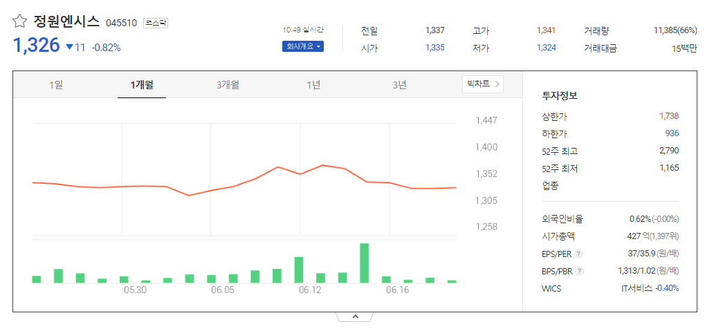 정원엔시스 주가 분석