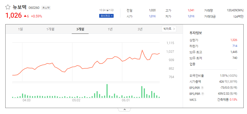 뉴보텍 주가 분석