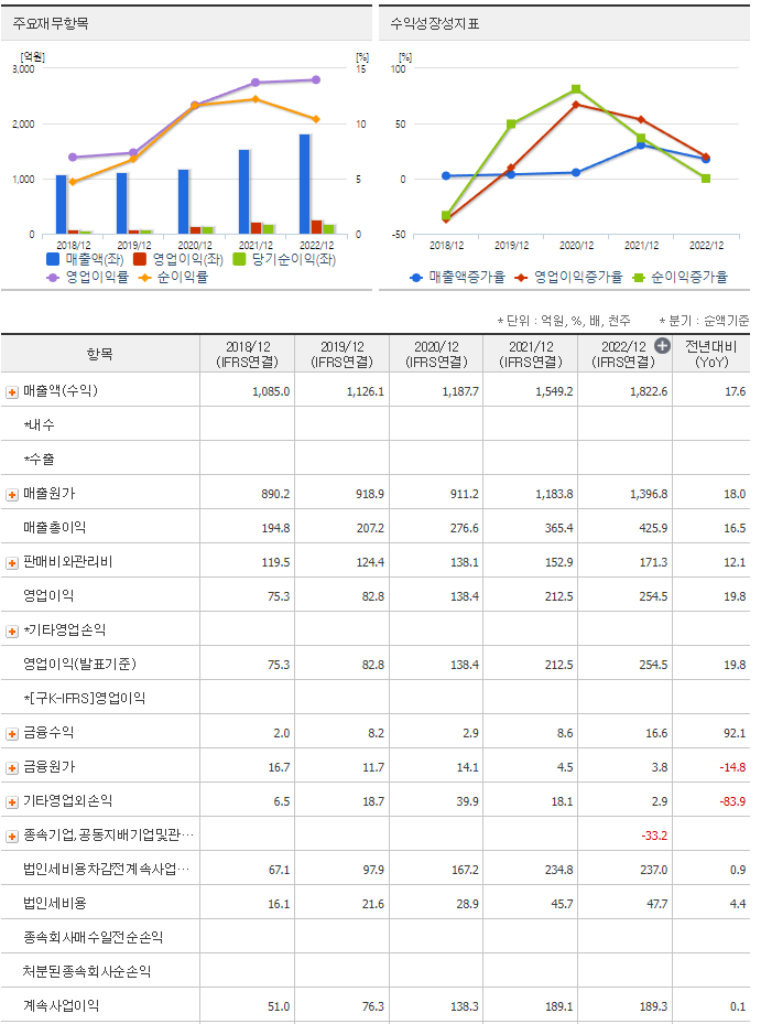 -2023년 3월 전년동기 대비 연결기준 매출액은 21.8% 감소, 영업이익은 58.4% 감소, 당기순이익은 60.3% 감소. 전년 동기 대비하여 매출액이 감소하였고, 이로 인하여 영업이익 및 당기순이익이 감소하였음. 또한 금융이익이 크게 증가하였음. 2차전지 사업성장에 따른 시장 선점 및 생산능력 선제적 확보를 위하여, 새만금 국가산업단지에 신규공장을 건설 중에 있음.