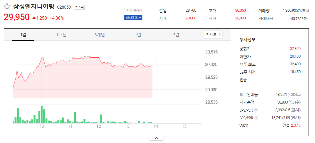 이 글에서는 삼성엔지니어링 주가 전망과 목표 주가, 기업 정보에 대해서 설명합니다. 주식 투자 전에 기업 주가 정보와 재무 상태를 분석하는 것이 필요합니다. 삼성엔지니어링 주식의 주요 현황과 투자 정보를 확인하시고 주가 흐름을 파악해보겠습니다.