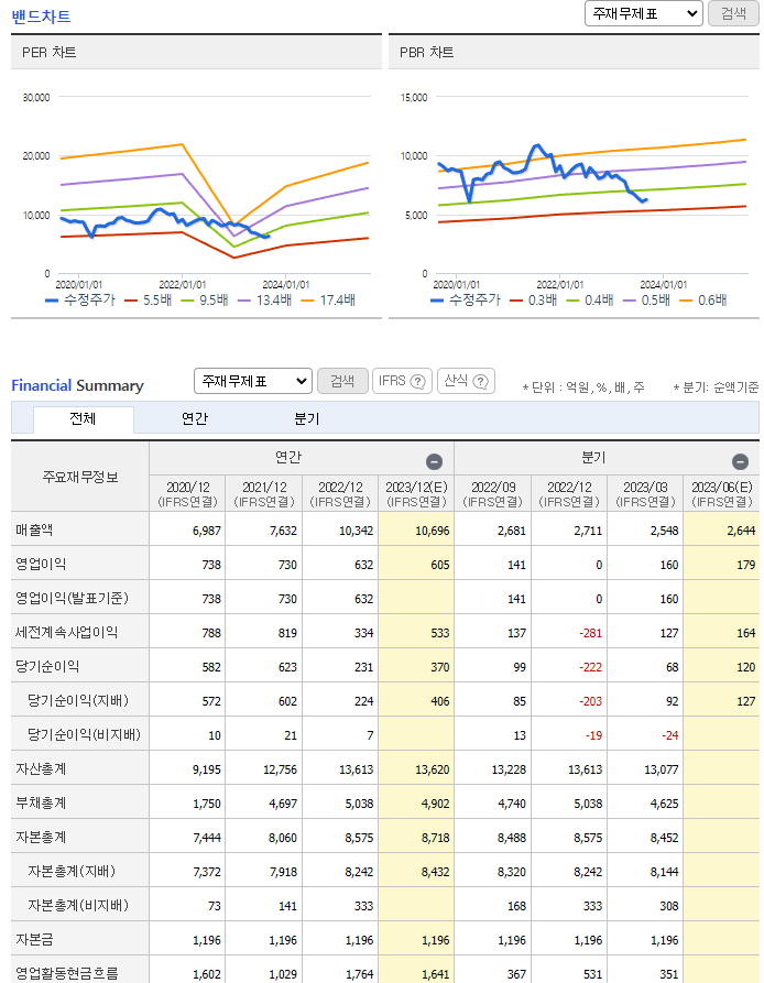 -2023년 3월 전년동기 대비 연결기준 매출액은 5.8% 증가, 영업이익은 37.9% 감소, 당기순이익은 50.2% 감소. 유료방송가입자는 OTS 이탈로 1분기 -4.4만명이 감소하였으나, 인터넷 재판매가입자순증세는 지속됨. 광고시장 위축으로 ENA 채널 광고수익이 부진하였으나 하반기 회복될 것으로 예상되며, KT 그룹의 지원하에 ENA 채널인지도는 상승할 것으로 보임.