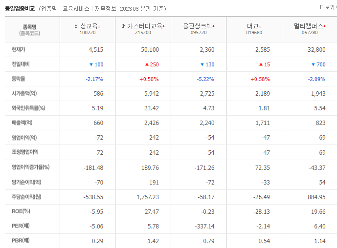 이 글에서는 비상교육 주가 전망과 목표 주가, 기업 정보에 대해서 설명합니다. 주식 투자를 하려면 기업의 주가와 재무 정보에 대해서 분석하는 것이 필요합니다. 비상교육 주식의 주요 현황과 투자 정보를 확인하시고 현재 시장 흐름을 알아보겠습니다.