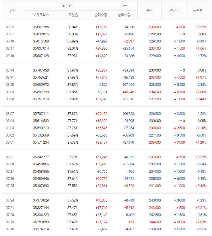 주주 상황 정보가 필요 없을 수도 있는 단기적인 투자를 고려한다면, 장기적인 투자를 고려 중이라면 주주 상황과 대표 정보를 알아두는 것이 좋습니다.