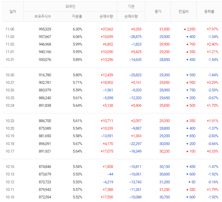 그래서 개인 투자자는 기관이나 외국인 세력을 따르고, 세력이 약해도 어떤 걸 사고 팔아 이익을 얻습니다. 최근, 외국인보다 기관 투자자를 따르는 흐름이 강해졌으며, 외국인의 매수가 불안정하고 개인의 단기 거래가 기관과 유사한 패턴 때문입니다.