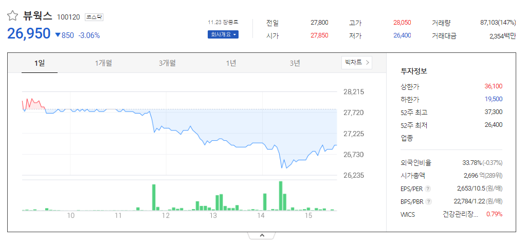 뷰웍스 주가 분석