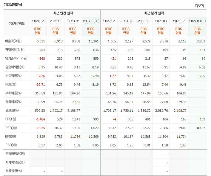 -2023년 9월 전년동기 대비 연결기준 매출액은 36% 증가, 영업이익은 9.5% 증가, 당기순이익은 111.7% 증가. 전년 동기 대비하여 매출액이 증가하였고, 이로 인해 영업이익도 증가함. 이자수익 및 외환차익 등의 기타이익과 금융이익의 증가로 당기순이익은 더욱 큰 폭으로 증가함. 동사는 2023년 6월 14일에 종속기업인 고성홀딩스(유)와의 소규모합병을 결정. 2023년 9월 1일부로 합병함.