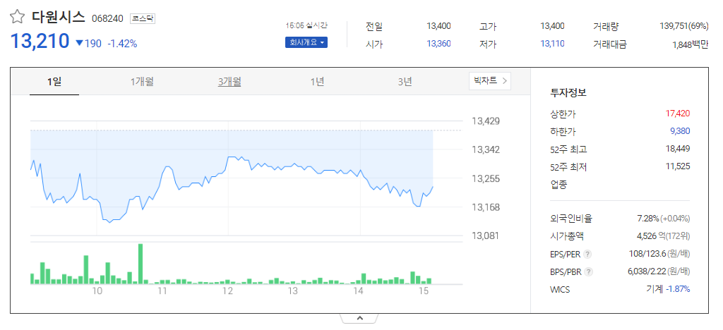 다원시스 주가 분석