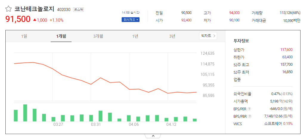 코난테크놀로지 주가 전망 확인과 기업 상세 정보