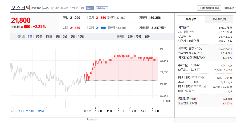 이 글에서는 오스코텍 주가 전망과 목표 주가, 기업 정보에 대해서 설명합니다. 주식을 사기 전에 기업 주가와 재무 현황표에 대해서 알아보는 것은 아주 중요합니다. 오스코텍 주식의 주요 현황과 투자 정보를 확인하시고 현재 시장 현황을 살펴보겠습니다.