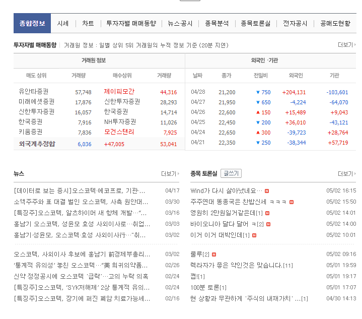 이중에 가장 좋은 것은 기관과 외국인 모두 매수하는 쌍끌이 주식을 투자하는 방법입니다. 양대 매수주체들이 같이 매수하는 것은 투자하기 좋다는 뜻입니다. 주식 주가 전망을 알아보기 위해서는 기업 정보를 분석하고 시장에서의 위치를 알아봐야 합니다. 그리고 기관과 외국인 매수 흐름까지 살펴본다면 수익이 올라갈 확률을 올릴 수 있다고 생각합니다.