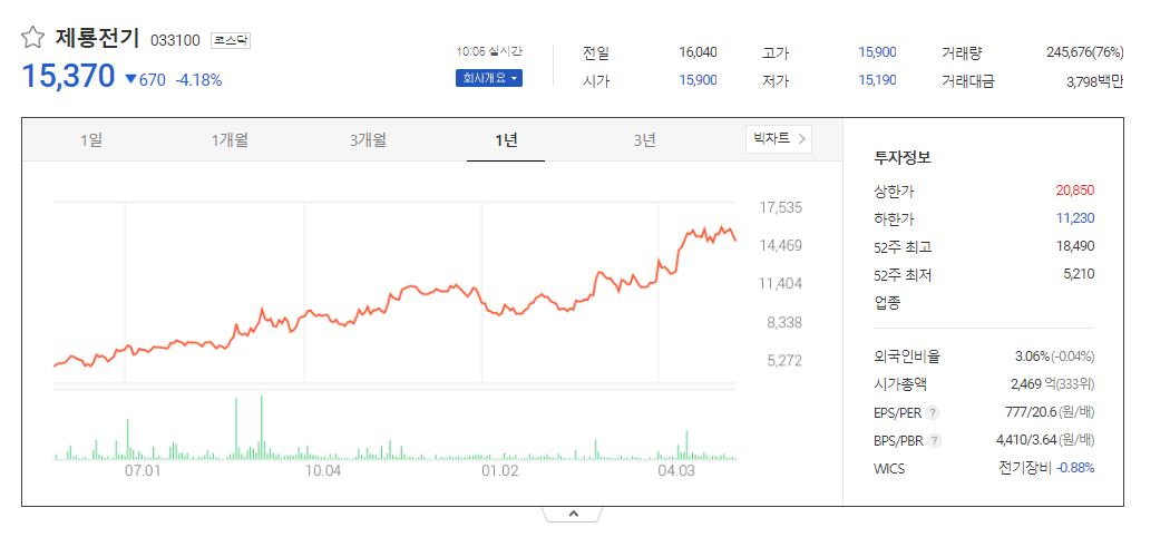 제룡전기 주가 분석