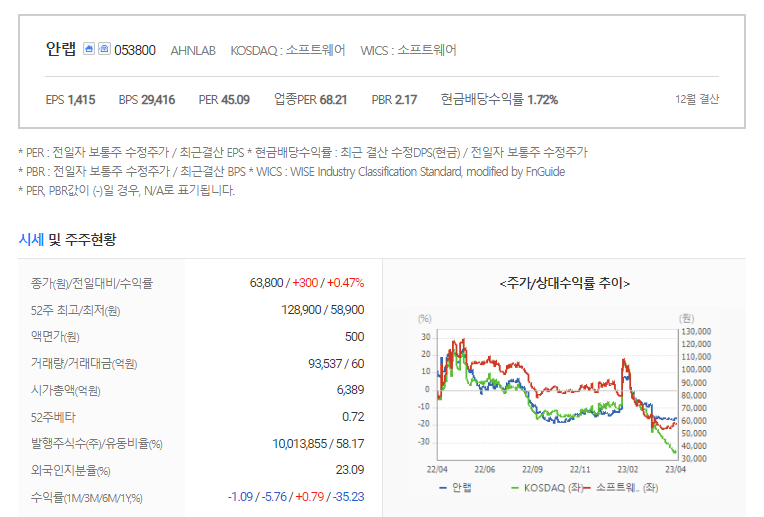 이 글에서는 안랩 주가 전망과 목표 주가, 기업 정보에 대해서 설명합니다. 주식에 투자하기 전에는 기업의 주가와 재무 정보에 대해서 분석하는 것이 필요합니다. 안랩 주식의 주요 현황과 투자 정보를 확인하시고 주가 흐름을 파악해보겠습니다.