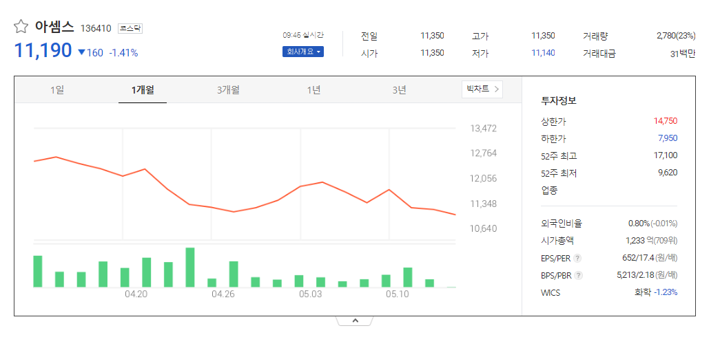 아셈스 주가 분석