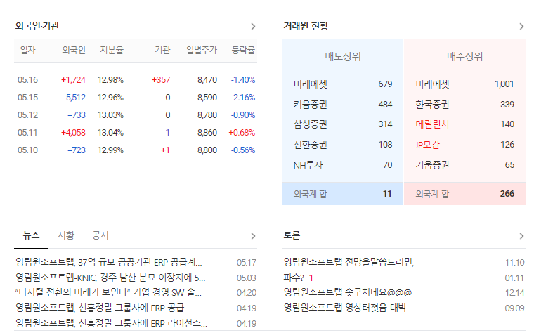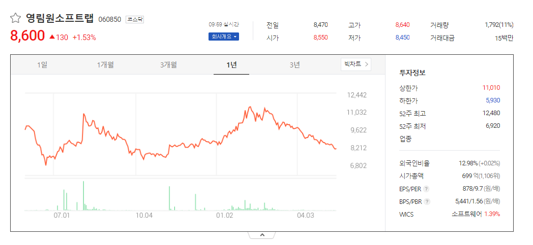 이 글에서는 영림원소프트랩 주가 전망과 목표 주가, 기업 정보에 대해서 설명합니다. 주식을 제대로 하기에 앞서 기업의 현재 주가와 재무 상태에 관해서 분석하는 것이 필요합니다. 영림원소프트랩 주식의 주요 현황과 투자 정보를 확인하시고 현재 시장에서의 위치를 분석해보겠습니다.