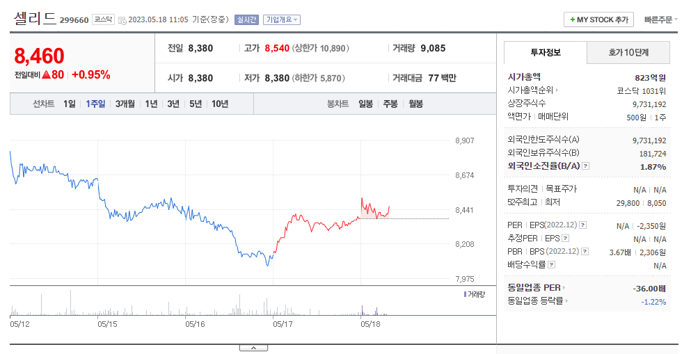 셀리드 주가 전망 현황과 주식에서 기업 순위