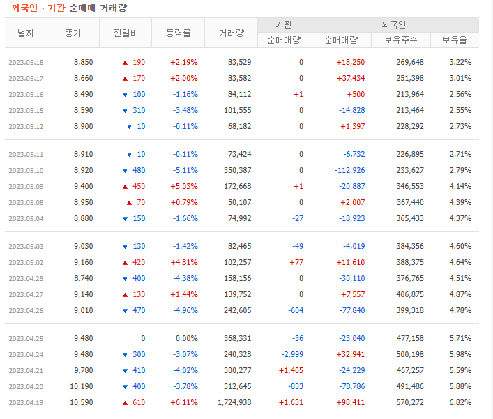 그래서 개인 투자세력은 외국인이나 기관 투자자를 따라하는 것 밖에 방법이 없습니다. 세력이 약한 개인 투자자는 외국인과 기관의 매수 매도 흐름을 확인만해도 수익을 낼 수 있습니다. 지금 시장에서는 외국인보다는 기관 투자를 따라하는 경우가 많습니다. 외국인 매수는 허수가 많고 개인 투자자들이 좋아하는 단기 매매는 기관투자자가 적합하기 때문입니다.