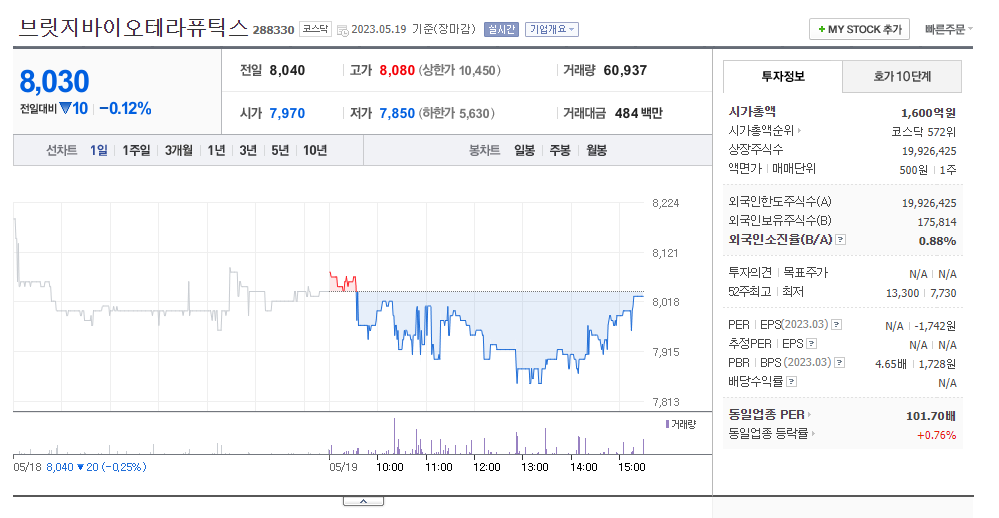 브릿지바이오테라퓨틱스 주가 분석