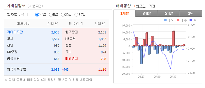 물론 가장 좋은 것은 기관과 외국인 모두 매수하는 쌍끌이 주식 종목을 투자하는 방법입니다. 양대 매수주체가 같이 매수한다는 것은 좋은 종목이라는 것을 의미합니다. 해당 종목의 주가 전망을 알아보기 위해서는 기업 정보를 분석하고 시장에서 어떤 상태인지 파악해야 합니다. 그리고 기관과 외국인 매수 추세까지 살펴본다면 수익을 낼 확률을 올리는 것이 가능합니다.