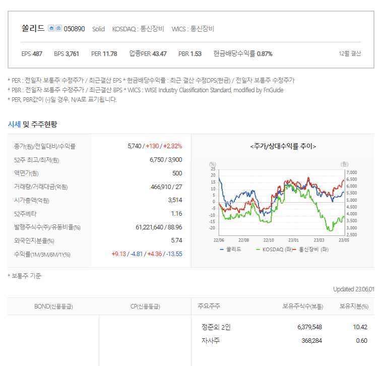 이 글에서는 쏠리드 주가 전망과 목표 주가, 기업 정보에 대해서 설명합니다. 주식을 사기 전에 기업의 주가와 재무 정보에 대해서 분석하는 것이 필요합니다. 쏠리드 주식의 주요 현황과 투자 정보를 확인하시고 현재 시장 현황을 살펴보겠습니다.